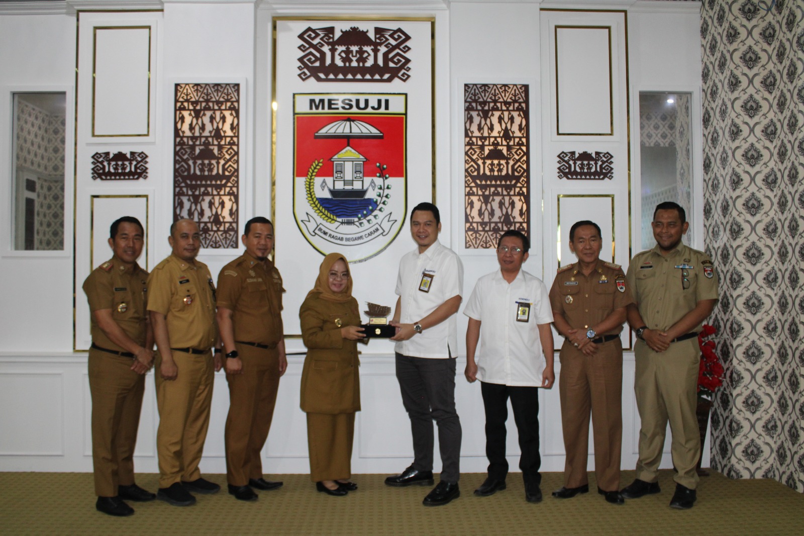Bupati Mesuji, Hj. Elfianah, menerima kunjungan audiensi dari Kepala Kantor Pelayanan Pajak (KPP) Pratama Kota Bumi, Nurdin Erwin beserta jajarannya di Ruang Rapat Bupati Mesuji, pada hari Senin (22/09/2025).